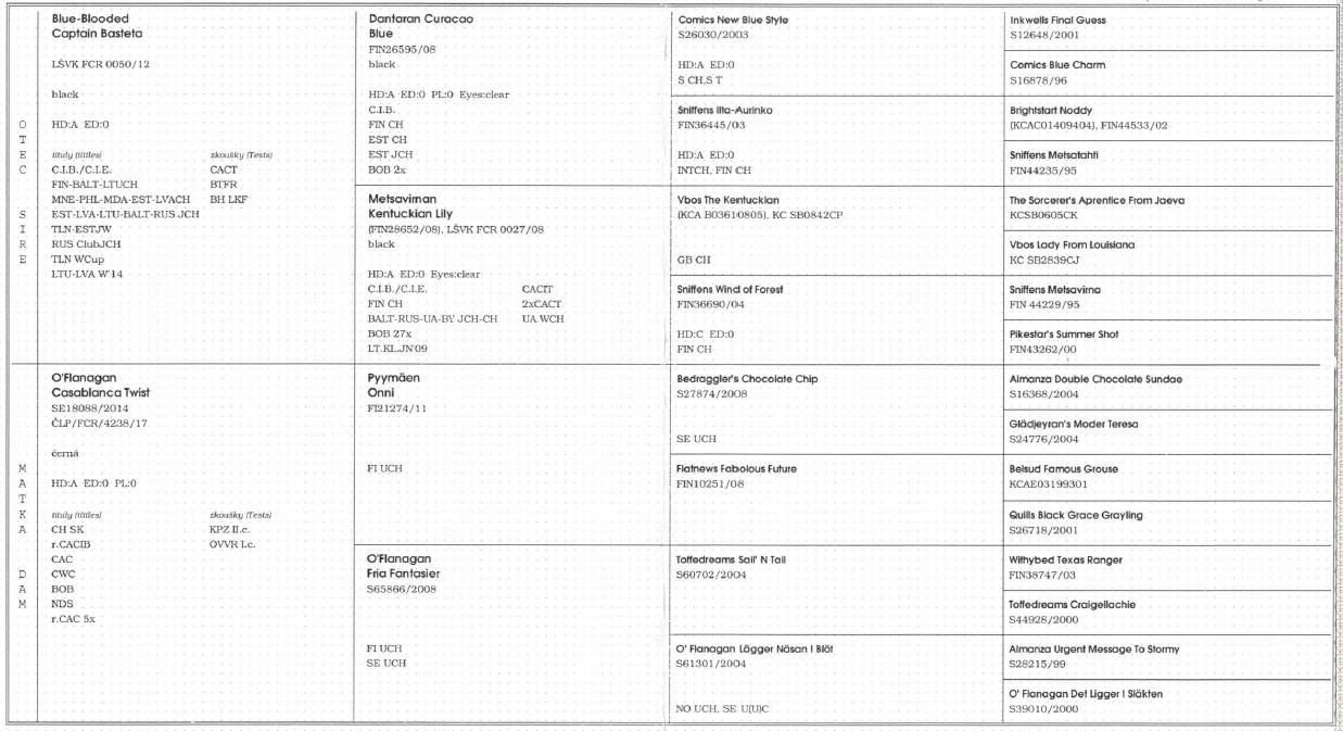 Eli je typově silná fena, s perfektní pigmentací, tmavou barvou oka a nádhernou hlavičkou. Tato linie, co se tělesného rámce týče, se dodělává později, tedy ještě ve třech letech pozoruji, že stále mohutní. Díky tomu je velmi líbivá.